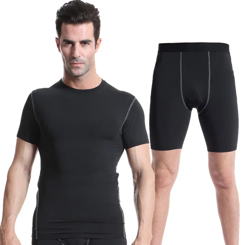 Best Men Pro Tight-Fit Training Suit Sports Fitness Suit Wicking Quick Drying Clothes Short Sleeve + Sho